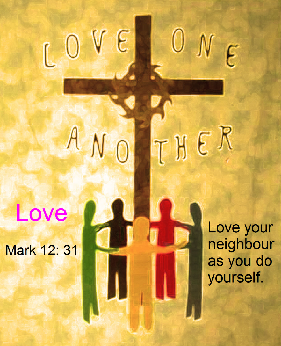 Love - In the parable of the Good Samaritan - Luke 10 25-37 - Jesus said we should Love our Neighbour, in other words we should care for each other.